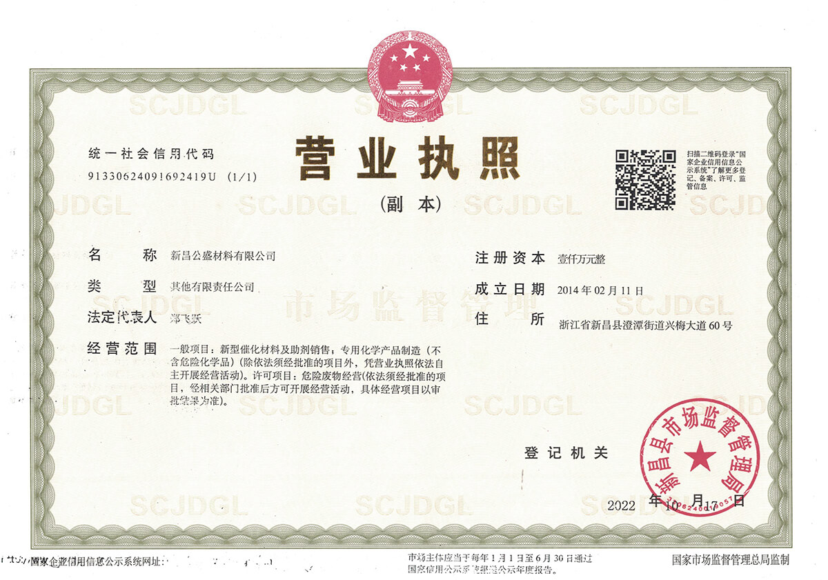 新昌公盛材料有限公司成立于2014年,坐落在江南大佛名城浙江新昌,地理位置優(yōu)越,交通便利,并配備有現(xiàn)代化的廠房和實驗樓,總占地面積80畝。公司聚焦于研發(fā)和生產(chǎn)用于醫(yī)藥、農(nóng)藥、染料、材料等精細(xì)化工領(lǐng)域的貴金屬催化劑。目前主要從事鈀炭、鉑炭、釕炭等多項催化劑及醋酸鈀、DPPF二氯化鈀、雙三苯基膦二氯化鈀、四三苯基膦鈀、DBA鈀等均相催化劑的研發(fā)、生產(chǎn)、銷售以及失效鈀、失效鉑催化劑的回收再加工等業(yè)務(wù)。公司成立以來,一直以提升客戶產(chǎn)品的競爭力為經(jīng)營宗旨,通過持續(xù)改進(jìn)客戶所用催化劑的性能,來提高客戶產(chǎn)品的收率,提高催化劑的套用次數(shù),提高失效催化劑的貴金屬回收率,來降低客戶產(chǎn)品中貴金屬催化劑的成本,進(jìn)而提升客戶產(chǎn)品的競爭力。